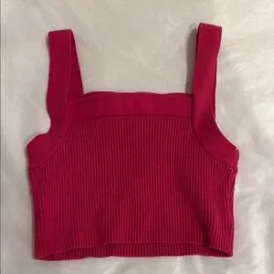 Add a pop of color to your wardrobe with this elegant red knit tank top. Perfect for layering or wearing on its own, it combines style and comfort effortlessly.