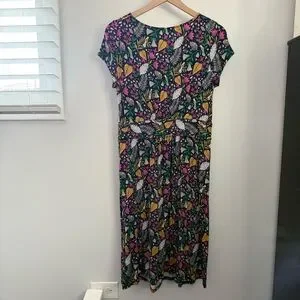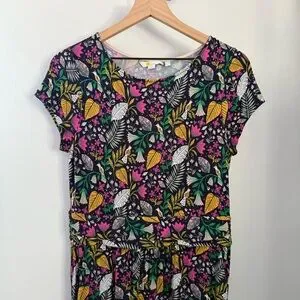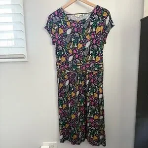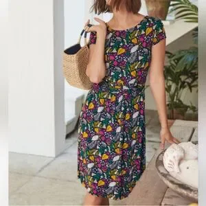 Boden US 8 Amelie Jersey Dress Floral Bird Print Navy Pink