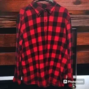 Unisex Red/Black Checkered Button-Down Shirt Size XL
