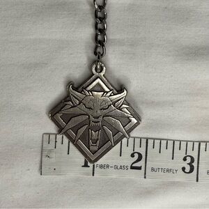 This silver tone White Wolf medallion keychain is a striking accessory for any collection. Its design adds a touch of elegance and mystery. From 2015. Photos show details and size. In very good condition.