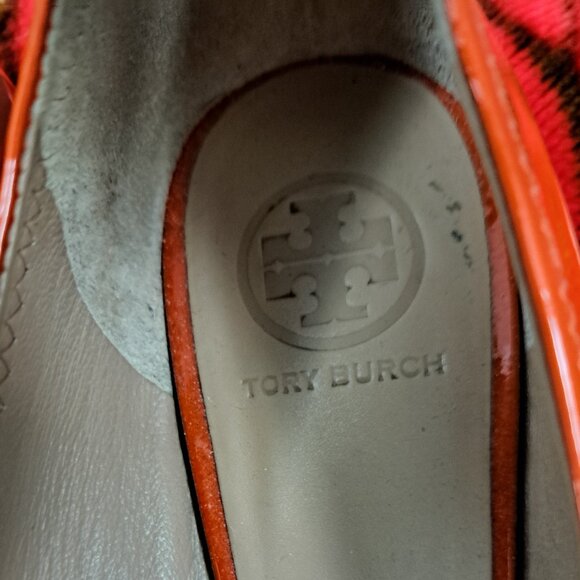 Tory Burch Gold 'reva' Ballet Flat Orange Patent Leather Shoe Size 8.5M