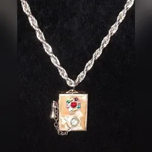 Vintage trinket, pill box Old Timey phone rhinestone pendant and charm