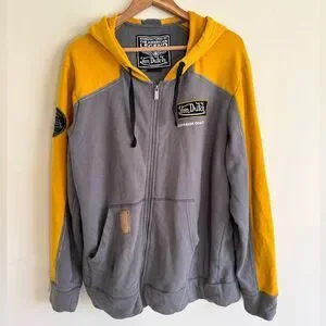 Von Dutch American Made zip up Hoodie jacket XL yellow grey