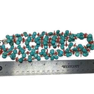 925 Sterling Silver Clasp on Turquoise Necklace w/Pearls, Coral Accent 107.7g
