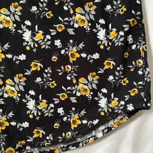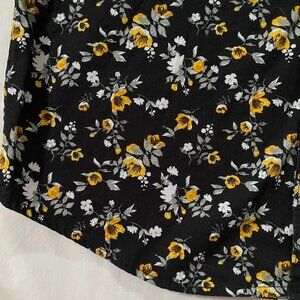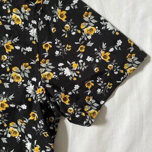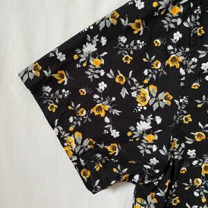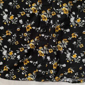 Denim & Flower Black and Yellow Floral Button Up Shirt 100% Cotton Short Sleeve