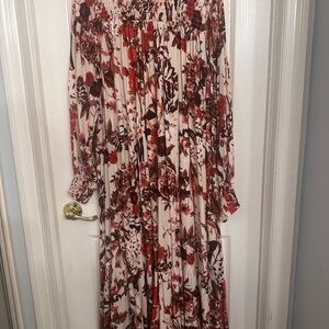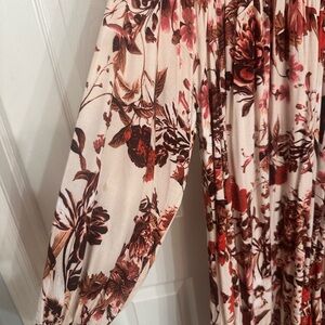 This elegant H&M dress features a ruched design in a flowing maxi length, perfect for a wedding guest occasion. The multicolored abstract print adds a sophisticated touch, while the long sleeves and airy fabric ensure comfort and style. Its artistic appearance and graceful silhouette make it a standout choice for any cocktail event.