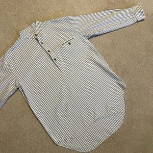 This top features a classic blue and white striped pattern, perfect for a timeless look. The long sleeves and soft fabric ensure comfort and style for any casual occasion. Its versatile design makes it a staple piece in any wardrobe.