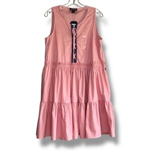 NWT Nautica Jeans layered sleeveless pink dress with denim lace up accent down front of dress bodice.