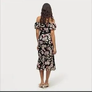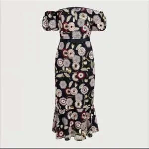 The Sam Edelman Navy Blue Embroidered Floral Dress in size 14 is a sophisticated and feminine piece perfect for various occasions such as weddings, parties, or formal events. With a flattering V-neckline, short sleeves, and a midi length, this A-line dress features intricate floral embroidery on a mesh fabric, adding a touch of elegance. The dress is lined for comfort and has a zip closure at the back for easy wear. Ideal for all seasons, this dress is a versatile addition to any woman's wardrobe.