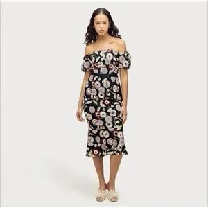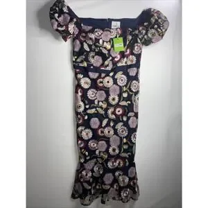 Sam Edelman Navy Blue Embroidered Floral Dress 14 NWT