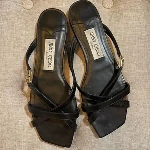Jimmy Choo Elegant Black Leather Sandals