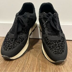 Vintage vibe sneakers with leopard print in black. Contrasting white soles. Euro size 38, US size 7 1/2
