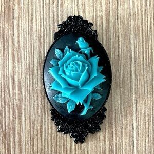 Victorian Style Black and Teal Rose Cameo Brooch NWT