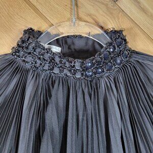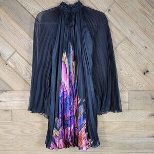 Alberto Makali Cape Dress Beaded Collar Pleated Flowy Belled Arms Size S Small