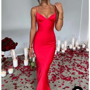 ATHENA RED STRAPY EVENING GOWN - RED - EUC S - BABYBOO
