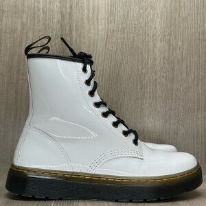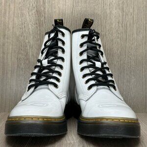 Dr. Martens Boots Sz W7 M6 Zavala 8 Eyelet Combat Platform Patent Leather White