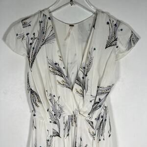 Free People Women's Floral Retro Midi Dress 4 V-Neck Boho with Pockets