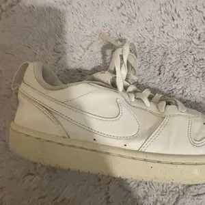 Elevate your look with these Nike sneakers. Cream color adds a touch of elegance. Perfect for casual outings. (Used)