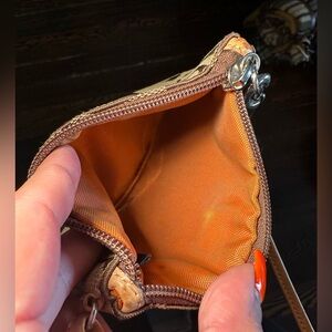 This is an authentic Coach brown leather ware zip wristlet. In good preowned condition. There is some wear on the inside fabric. The chain for the tag is missing but the tag is still included