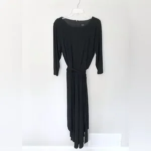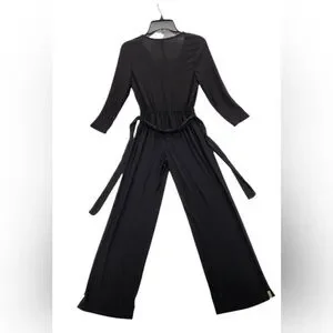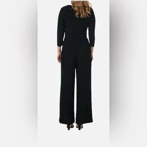 This MSK black sophisticated jumpsuit offers great versatility The medium-weight fabric drapes beautifully, making it suitable for both casual and formal occasions. Full black, back zipper with elastic waistline. Matching tie belt