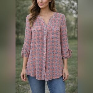 Collective Concepts Boho Geometric Coral Long Sleeve Blouse – Size Large #1118