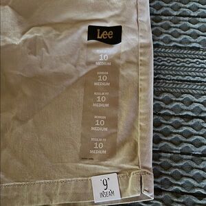 Classic khaki shorts by Lee. Ideal for everyday wear. Durable and stylish design. Size 10 inseam 9” waist 16” 17 1/2” length 19 1/2” NWT