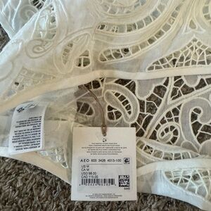 This beautiful white lace top is perfect for any occasion. Pair it with your favorite jeans or skirt for a great new look. This is an American Eagle top from there luxury line AE77. Brand new with tags. Feel free to make an offer.