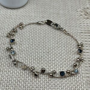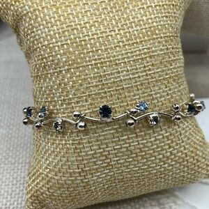 Vintage Vine CZ Bracelet Blue & Clear Stones | 7.25"