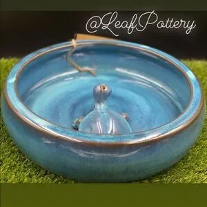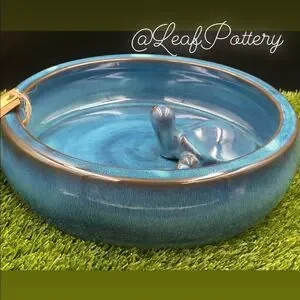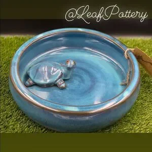 Dimensions: 3in H x 10.50in W x 10.5in D, Type Bowl, Material Ceramic, No power source, Residential use. Beautiful Birdbath in Teal color with turtle attached to the bowl . Handcrafted in Vietnam