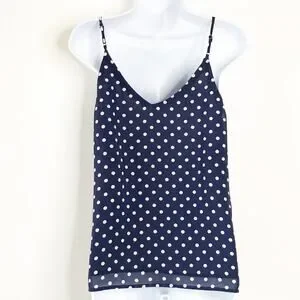 Sophie Rue Med Tank Top Spaghetti Strap Polka Dot Blue Covered Buttons Adj Strap