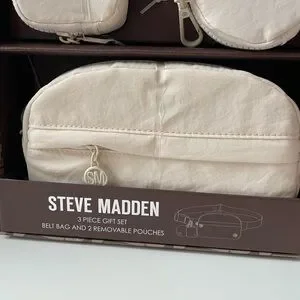 NWT STEVE MADDEN belt bag with removable accessory pouches in cream color. Great sized belt bag with two pouches that are attachable (great for tech accessories). Classic cream color will match everything.