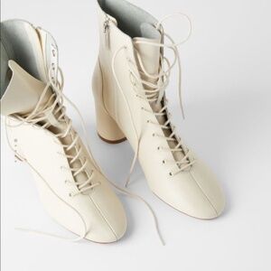RARE ✨ Zara Cream Lace-Up Leather Ankle Boots