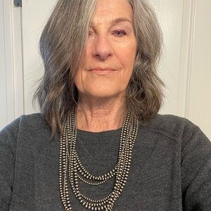 3 strands of 3 different size beads. Purchased in Santa Fe NM .Beautiful patina. 168 grams.