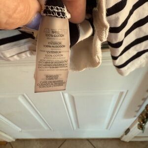 Karl Lagerfeld White Tee Black Stripes Logo Pink Sparkle Signature 100% Cotton