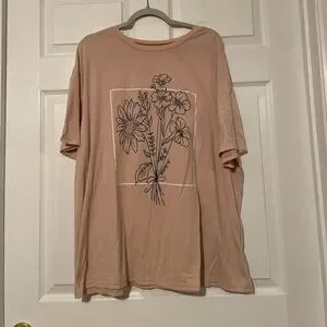 Tan floral graphic t-shirt. Super soft material, loose fitting, & flowy oversized tee. Never worn.