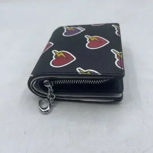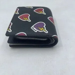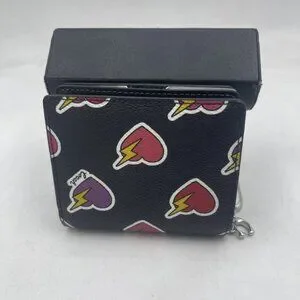 Compact and fun, the Coach Snap Wallet features a bold heart and bolt print with a sleek silver and black color combo. Perfect for keeping your essentials organized with style, it easily fits in small bags, totes, or your pocket.