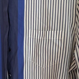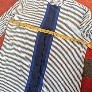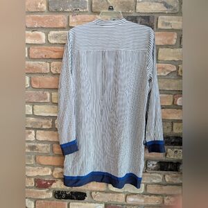 Elegant long sleeve dress by Equipment. Features navy and white stripes. Stylish and versatile.