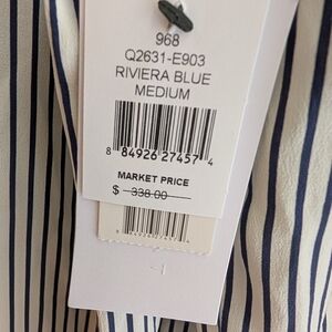 The Equipment Belen Blue Ivory Striped Silk Shirt Dress is a versatile and stylish piece suitable for casual and business occasions. Made from luxurious silk material, this knee-length dress features a collared neckline, long sleeves with covered placket button closure, and a flattering striped pattern. The multicolor design adds a touch of sophistication, making it a perfect choice for the summer, fall, and spring seasons. With its medium size and regular fit, this shirt dress from Equipment is a must-have for any discerning woman's wardrobe.