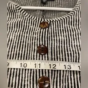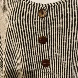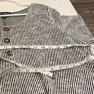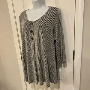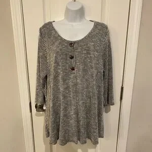 • Features: 3/4 Sleeve, V-Neck, Button Detail, Striped, Loose Fit
