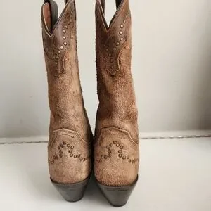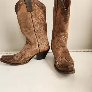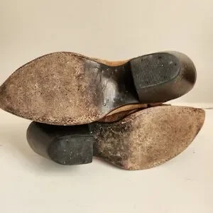 Step out in style with these rugged brown cowboy boots. Perfect for adding a touch of Western flair to any outfit.