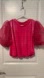 Elevate your style with this stunning pink velvet top featuring dramatic puff sleeves. Perfect for any occasion, this top adds a touch of elegance to your wardrobe.