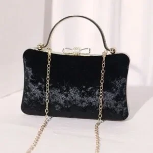 This elegant black velvet handbag is perfect for any occasion. Its sleek design and luxurious feel make it a must-have accessory.