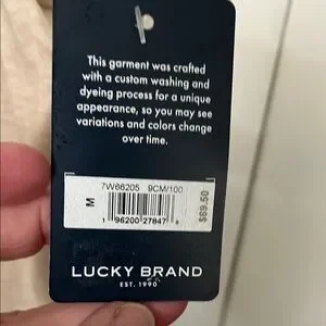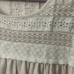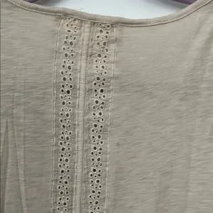 This cream tank top from Lucky Brand showcases a sleeveless design with a smocked style, offering a relaxed and bohemian vibe. The intricate lace panel across the chest adds a touch of elegance, while the soft fabric ensures comfort and ease of wear.