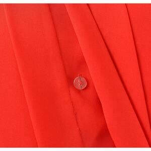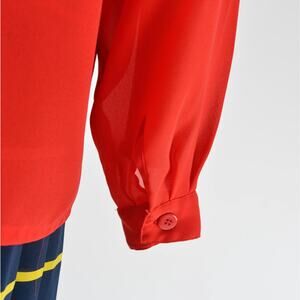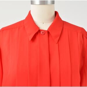 Vintage 1980's red blouse. Slightly sheer crepe fabric. Pleated front. Collared neckline. Long sleeves with button down cuffs. Hidden button closures.