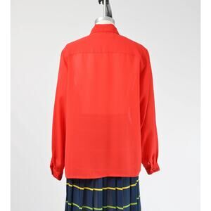 Vintage 80s Red Pleated Blouse Semi Sheer Top Collared Button Down Blouse M