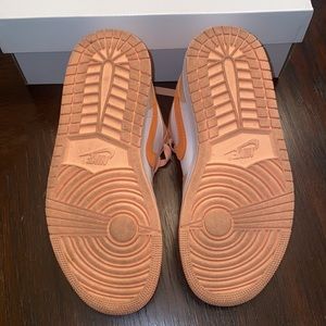 Stylish Jordan athletic shoes for women. Features vibrant orange and white design. Perfect for sports and casual wear.