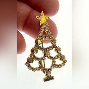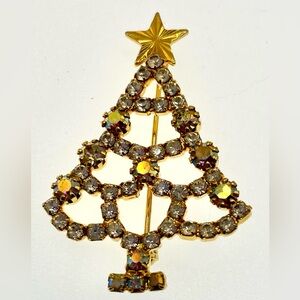 Vintage VTG Estate Jewelry Mod Modern Retro Boho Bohemian Classic Unisex 50s 60s 70s Crystal AB Aurora Borealis Brooch Pin Bro Brooch Brother Brooch Man Brooch Men Brooch Holiday Christmas Tree