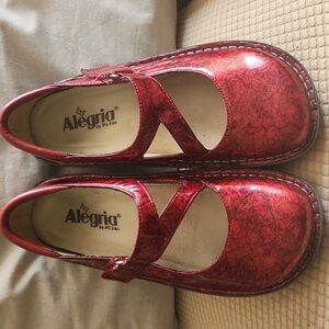 Bright red Alegria dress shoes:) Shiny finish with classic Mary Jane style. Ideal for special occasions. Very Limited Wear as seen in Photos Smoke and Animal Free:)