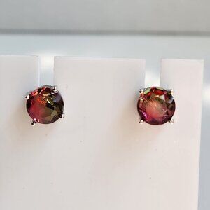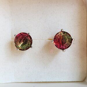 NIB 6mm 925 Silver 6mm Watermelon Tourmaline Stud Earrings