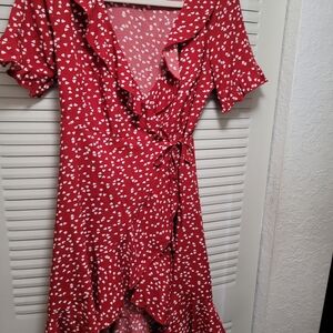 Embrace effortless style with this vibrant red sundress from PatPat, featuring a chic asymmetrical wrap design. The flutter sleeves and ruffled details add a playful touch, while the tie front and V-neckline enhance its feminine appeal. Perfect for casual outings or cocktail events, this dress combines comfort and elegance seamlessly.